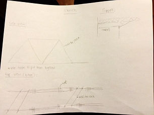 Ideas behind the Structure: The bridge originally started out as two support beams connected by cross sections. The support beams were made by connecting three skewers together, with the middle skewer staggered upward so two more skewers could be connected without having more than three touching at a time. We thought this would make them stronger than if the support beams were just single skwers. Half skewers were connected in between them and everything was connected with masking tape. For the base, it was initally taped down to the desk but then we added 2 skewers from under the desk at an angle to the bridge as well to keep the bridge elevated off the ground longer.
